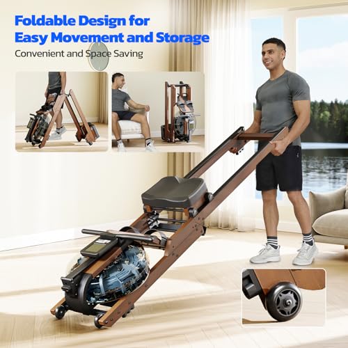 Produktbeschreibung: Dripex Faltbares Wasser-Rudergerät für Zuhause aus Massivholz| mit LCD-Display & Bluetooth App | Ergonomischer Sitz | bis 400LBS Belastbarkeit | Klappbar für platzsparende Aufbewahrung