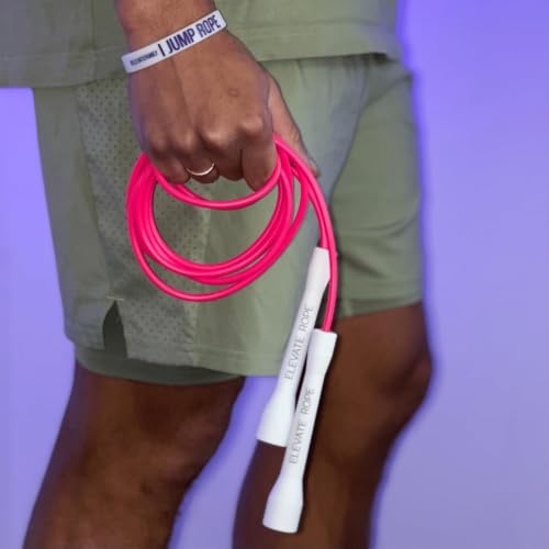 Produktbeschreibung: Elevate Speed Rope MAX – Professionelles Springseil aus Strapazierfähigem PVC mit Nylonkern – 5 mm – Länge Max. 3 Meter – Extrem Starke Griffe (Pink)