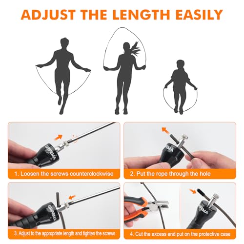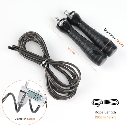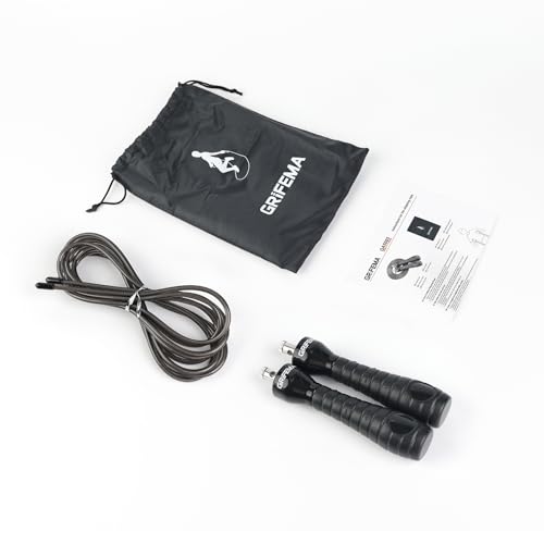 Produktbeschreibung: GRIFEMA Springseil, Speed Rope Verstellbar mit Rutschfester Griffe, Länge Einstellbar, Rutschfest, Springseil Erwachsene Fitness für Fitness und Ausdauer und Seilspringen, Schwarz
