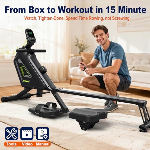 Produktbeschreibung: Klyzoom Rudergerät für Zuhause – 16 Widerstandsstufen, leises magnetisches Rudergerät mit APP, 160kg Tragfähigkeit, einfache Montage, kompakt & platzsparend (16 Widerstandsstufen& 160kg Tragfähigkeit)