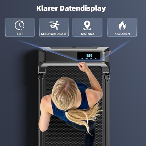 Dieses klappbare Laufband ist eine gute Wahl für dich, wenn du nach einer flexiblen und platzsparenden Lösung für dein Heimtraining suchst. Es eignet sich besonders gut für das Home Office, da du es als Walking Pad unter deinem Schreibtisch nutzen kannst. Aber auch für kurze Trainingseinheiten nach Feierabend ist es ideal. Besonders überzeugend ist die einfache Bedienung und das kompakte Design, das eine einfache Lagerung ermöglicht. Beachte jedoch, dass die maximale Geschwindigkeit von 6 km/h für intensives Lauftraining möglicherweise nicht ausreicht.