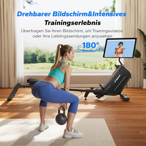 Produktbeschreibung: MERACH Rudergerät für Zuhause Klappbar mit 21,5-Zoll-HD-Drehbildschirm, Automatischem Widerstand per App, 16-stufigem Leisem Schwungrad, Intelligenten Magnetischen Rowing Machine for Home(R15B3)