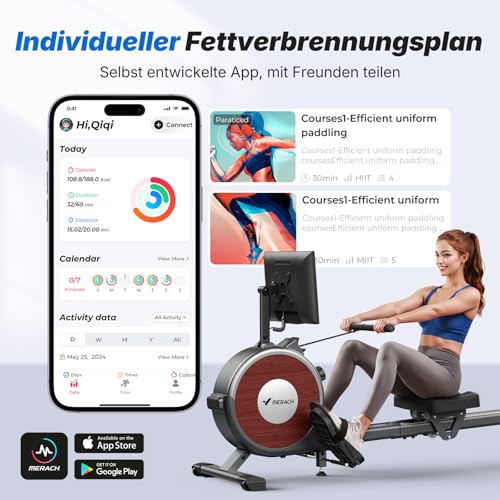 Das MERACH Rudergerät ist ideal für alle, die ein effektives und unterhaltsames Cardiotraining zu Hause suchen. Der integrierte Bildschirm, der leise Widerstand und das stabile Doppelspur-Design machen das Rudergerät zu einer guten Wahl für Anfänger und Fortgeschrittene. Besonders überzeugt die Möglichkeit, während des Trainings Live-Sport zu verfolgen oder andere Inhalte abzuspielen, was die Motivation steigern kann. Achte darauf, dass du ausreichend Platz für die Aufstellung und Nutzung des Rudergeräts hast. Wenn du ein vielseitiges und komfortables Trainingserlebnis suchst, ist das MERACH Rudergerät eine ausgezeichnete Option.