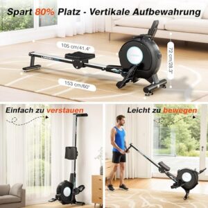 SportPlus klappbares Rudergerät: leise, 150kg, App-kompatibel.
