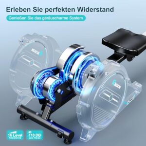 - MERACH Rudergerät: Hergestellt aus Massivholz, ergonomisches Design, maximale Belastbarkeit von 150 kg.