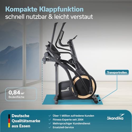 Produktbeschreibung: Skandika Crosstrainer für Zuhause Carbon P25-G, Crosstrainer klappbar, sehr leise, mit Generator verbraucht kein Strom, 32 Stufen, Kinomap App kompatibel, kompakt, Cardio, Ellipsentrainer Bis 150Kg